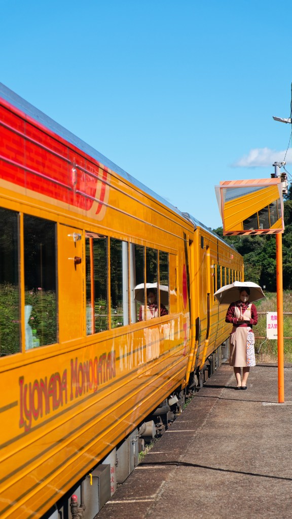 Dort wartet ein weiterer Themenzug, für den ich schon vor vielen Wochen ein Ticket ergattert habe: der Iyonada Monogatari, er fährt entlang der Küste von Ehime in die Kleinstadt Ōzu.