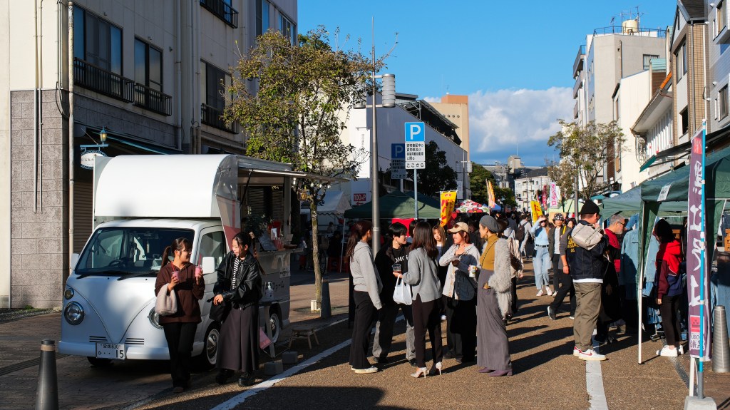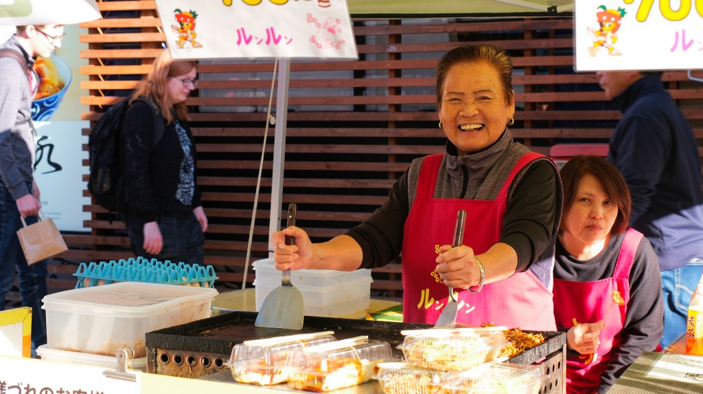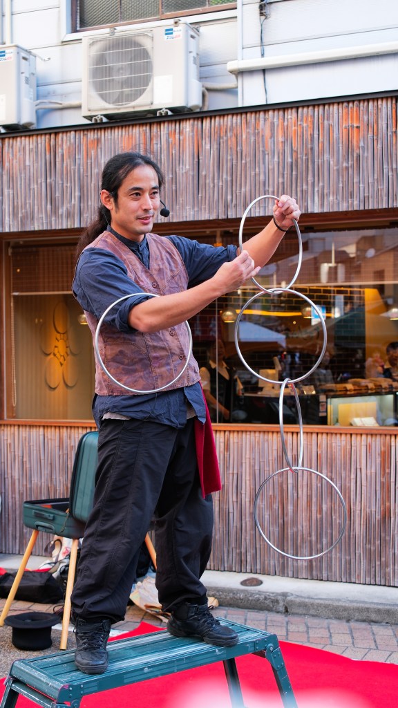Auf dem Weg zum Hotel verlaufe ich mich glücklicherweise, denn nur deshalb gerate ich in ein großes, kunterbuntes Straßenfest mit hunderten Ständen, Musikdarbietungen, Zauberkünstlern und vielen glücklichen Menschen. Ich frage zwei freundliche Männer, die dem Treiben bei einem Glas Wein oder Sake folgen, nach dem Anlass und erfahre, dass es ein Fest zu Ehren der Burg ist, das jährlich stattfindet. Ich lasse mich treiben, von der ausgelassenen Atmosphäre anstecken – und freue mich über viele schöne Fotomotive.