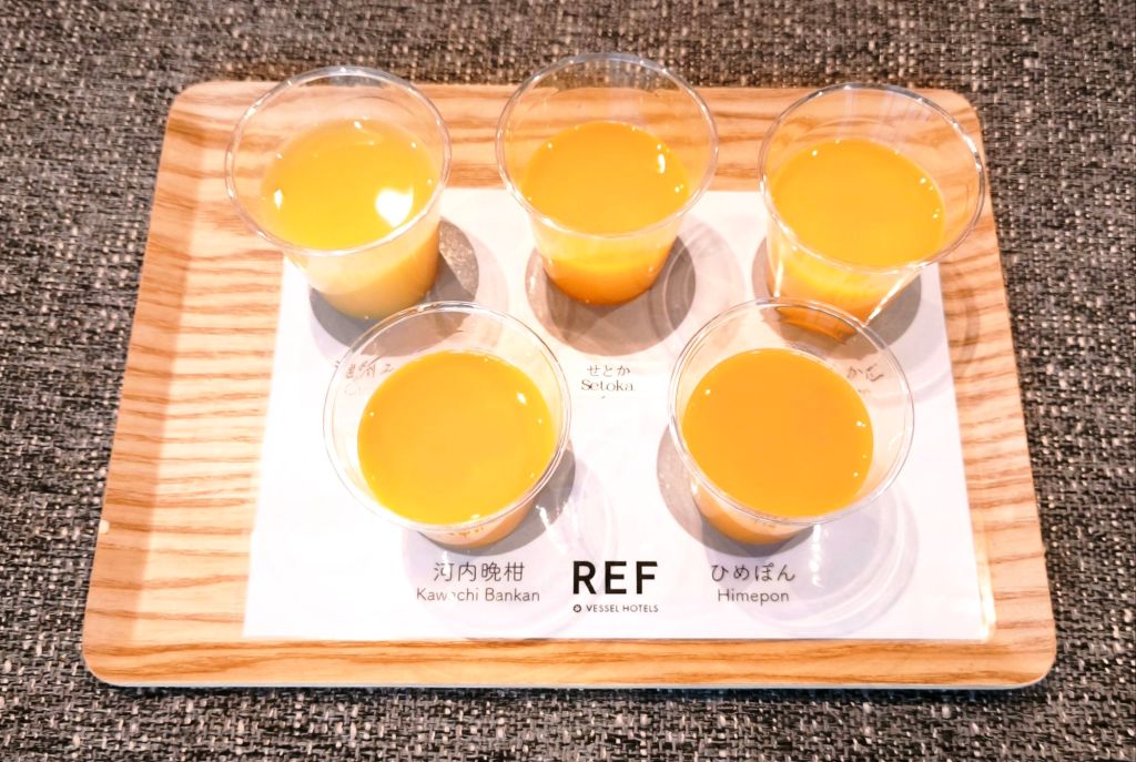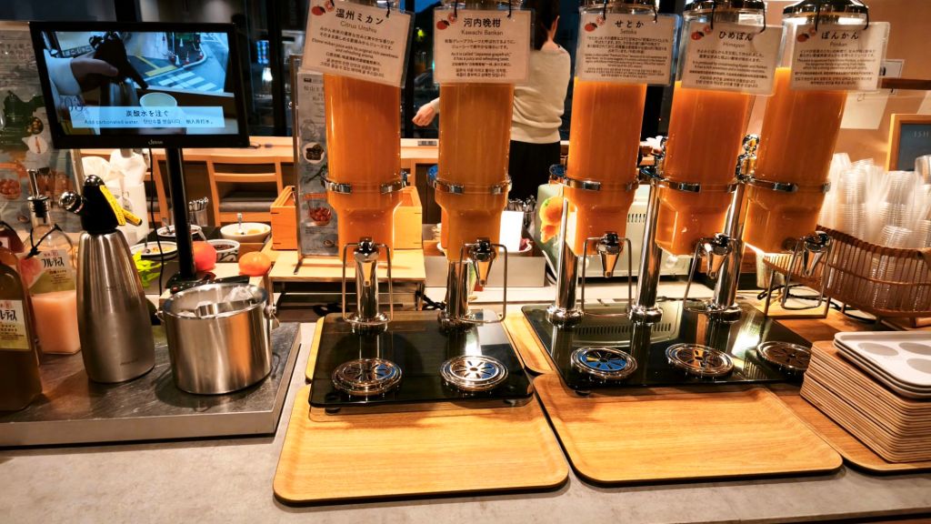 Auch in meinem Hotel finde ich zum Frühstück fünf Sorten Orangensaft und spezielle Tabletts mit Markierungen und Erklärungen. Die verschiedenen Sorten kann man in kleine Gläser abfüllen und diese so auf dem Tablett platzieren, dass man anschließend den Geschmacksvergleich durchführen kann. Auch die Farben sind unterschiedlich.