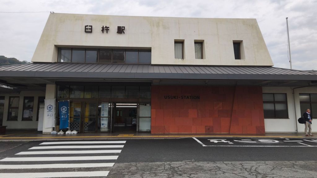 Gegen 13:00 Uhr Ankunft in Usuki, einer unscheinbaren Küstenstadt mit 30.000 Einwohnern. Am Bahnhof empfängt mich ein freundlicher Bahnbeamter, es gibt sogar einen kleinen Stand mit Touristeninformationen, aber hauptsächlich auf Japanisch. Zu Fuß gehe ich durch die Stadt; es herrscht Sonntagsstimmung – obwohl Donnerstag ist.