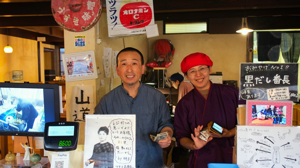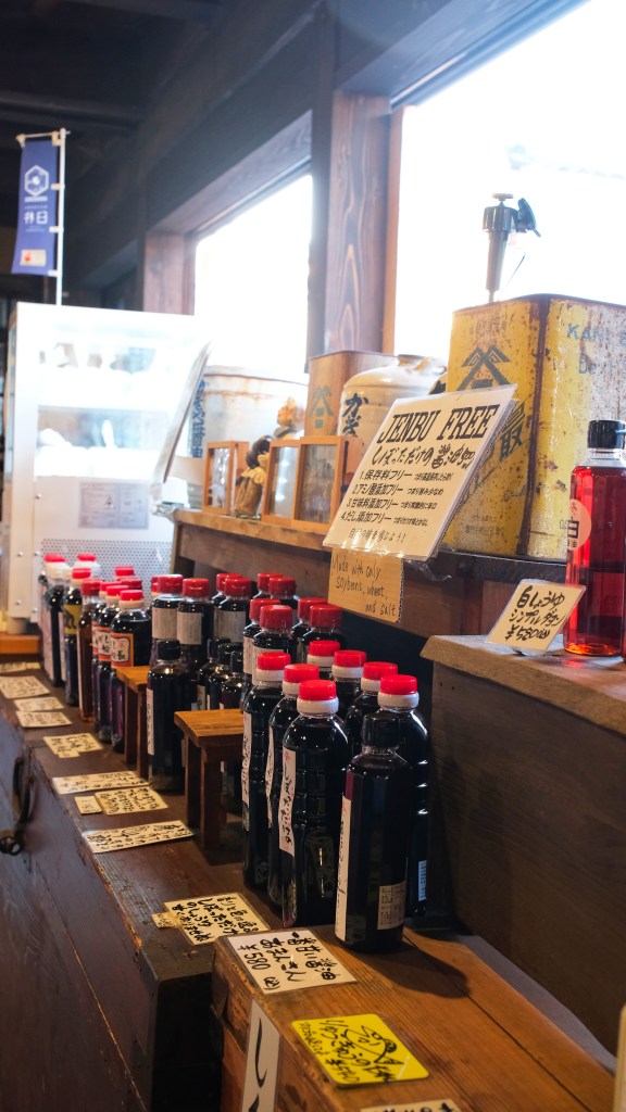 Auch das Geschäft, in dem selbstgemachte Sojasoße verkauft wird, statte ich einen Besuch ab. Neben der Sojasoße ist der Laden für seine handgefertigten Instant-Miso-Suppen bekannt. Davon kaufe ich 30 Beutel – die lassen sich gut nach Hause transportieren. Sie verkaufen dort sogar Miso-Eis.