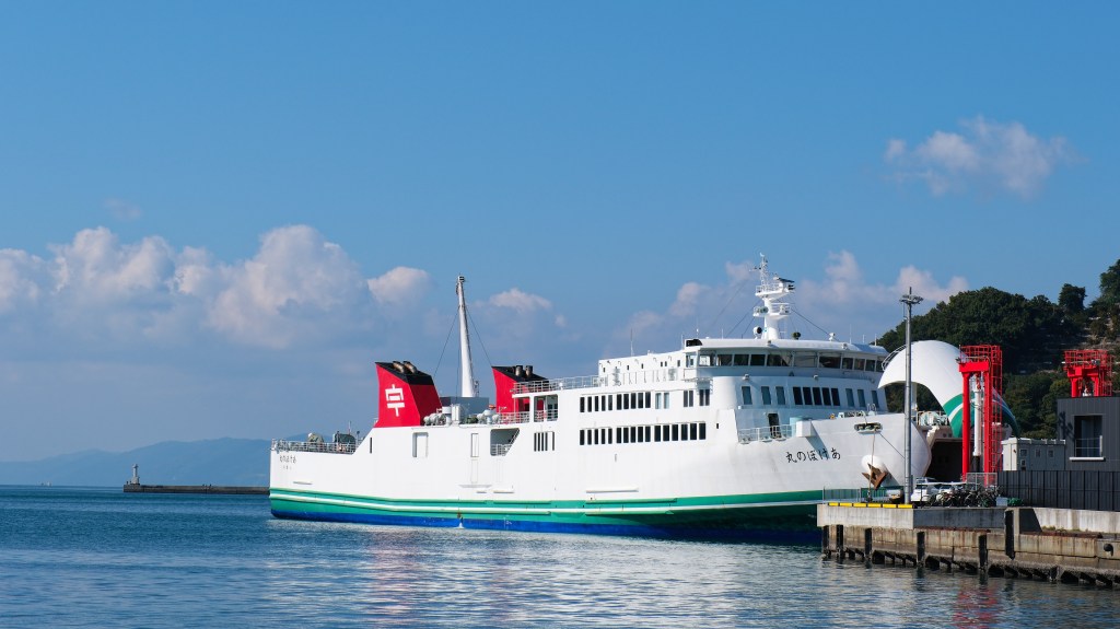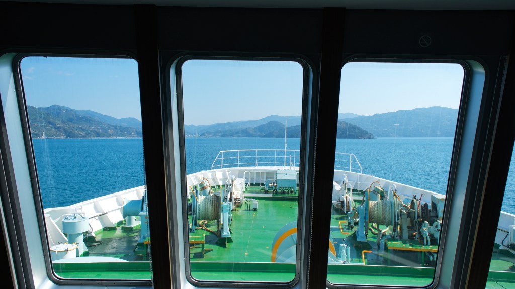 Ich entscheide mich aber spontan, die frühere Fähre um 9.00 zu nehmen. Es wird knappt, aber Ai ruft ein Taxi und ich komme rechtzeitig zum Hafen. Dort wartet das Schiff, die Rocket, eine normale Autofähre für eine etwas 3-stündige Überfahrt nach Yawatahama.