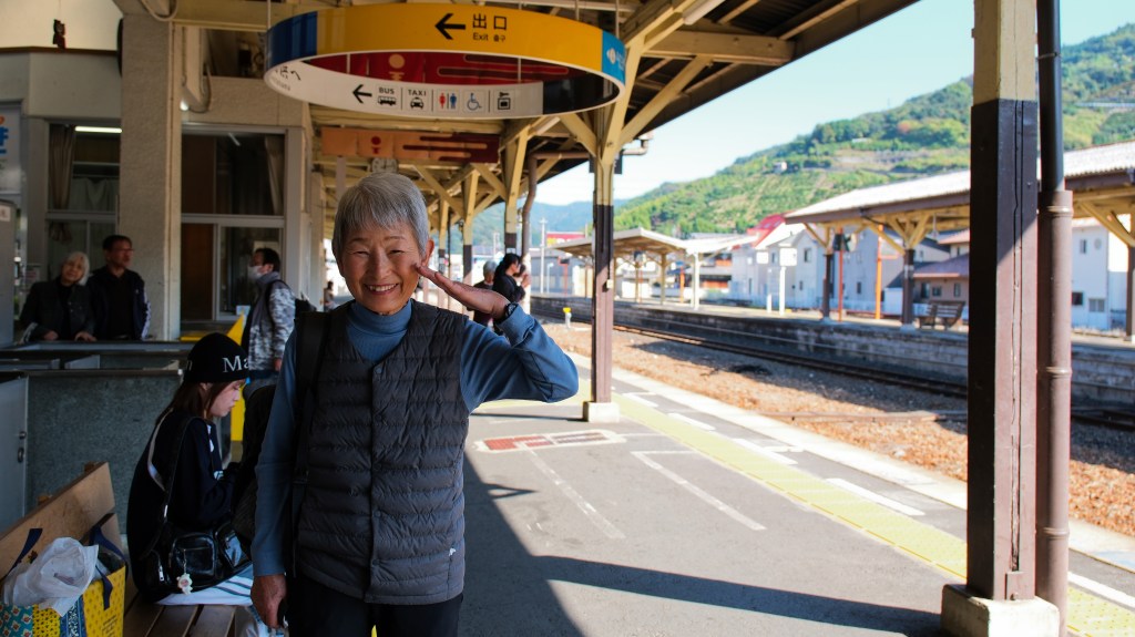 Am Bahnhof spricht meine ältere Dame in ausgezeichnetem Englisch an und erkundigt sich nach meinen Eindrücken von Japan. Sie hat lange Zeit in den USA gelebt und hat auch eine touristische Reise in die Schweiz gemacht. Sie schenkt mir eine Ehime-Orange, die köstlich schmeckt.